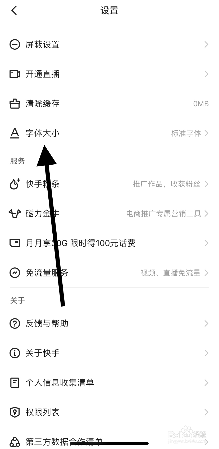3、最后:选择界面中的【字体大小】选项,即可完成操作。